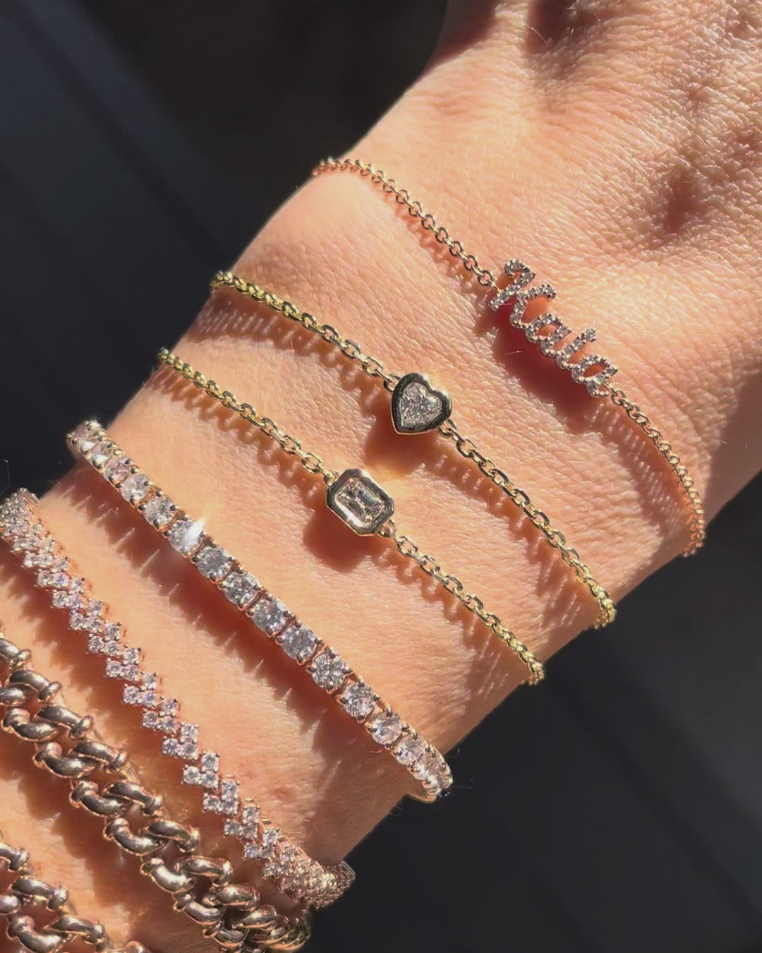 A bezel wrapped heart shaped diamond on a diamond cut chain. The sweetest gift.