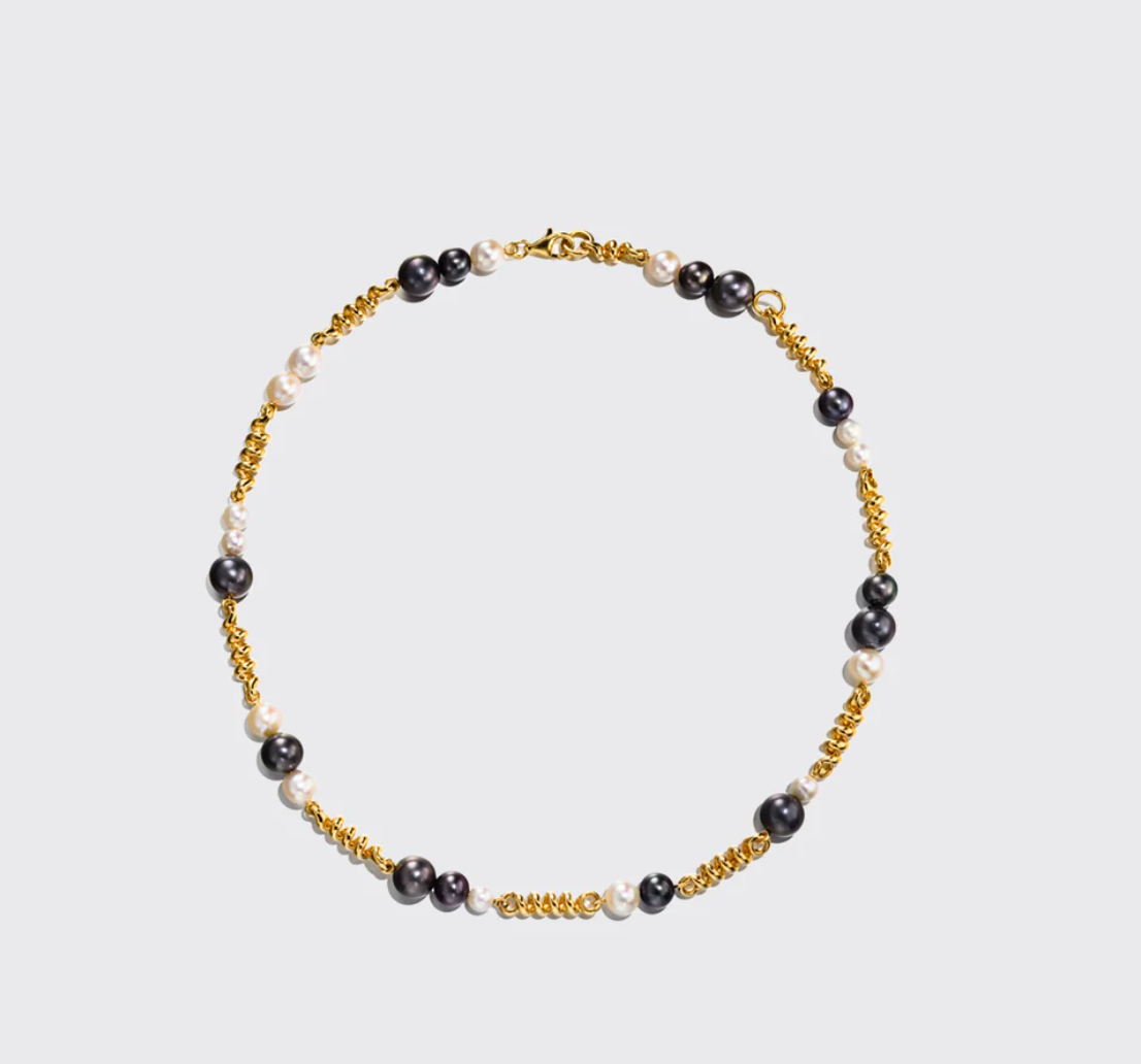 GREY AND WHITE PEARLS YELLOW GOLD BEACHING NECKLACE