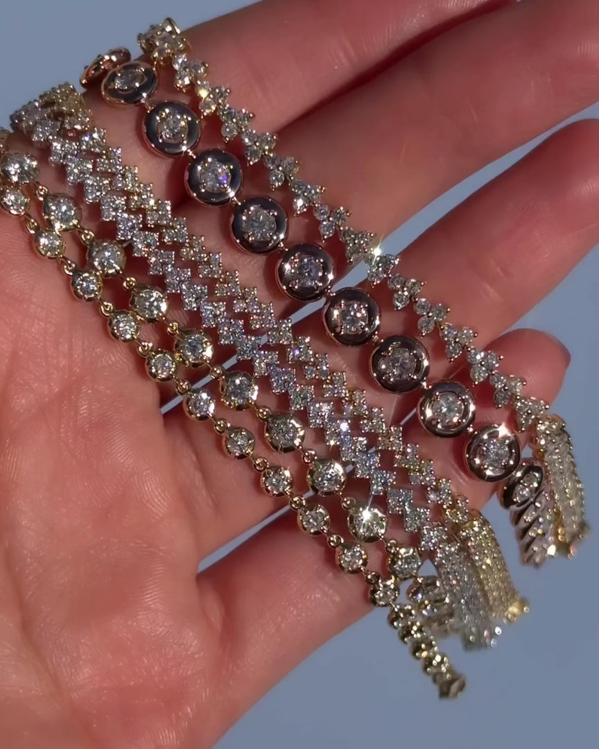 Part of the Rosette Collection, the Daisy Chain Link bracelet features diamonds set in our signature rosette style bezel and linked together. An elegant and airy design perfect worn alone or stacked with other chain or tennis bracelets.