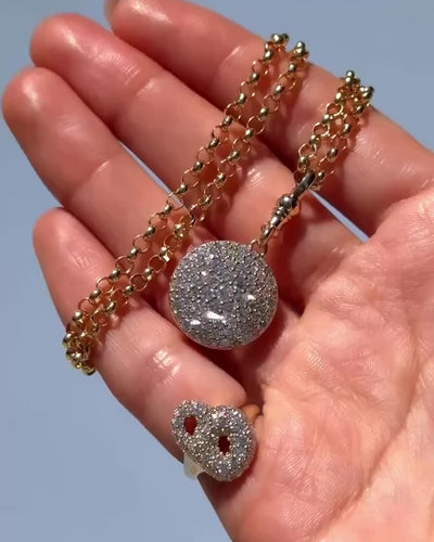 A round pocket watch style pendant set with diamonds, hanging on a solid round rolo chain. The diamond pocket watch pendants symbolizes the preciousness of time – a reminder that every moment is valuable and fleeting. The diamonds elevate it into a piece of luxury and legacy, purveying the timeless elegance of carrying both beauty and meaning close to the heart. To personalize, add your own meaningful engraving on the back; please inquire. Final sale.